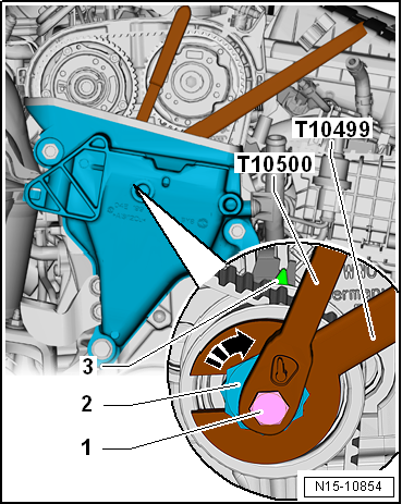 Loosen bolt -1- with tool insert -T10500-. |